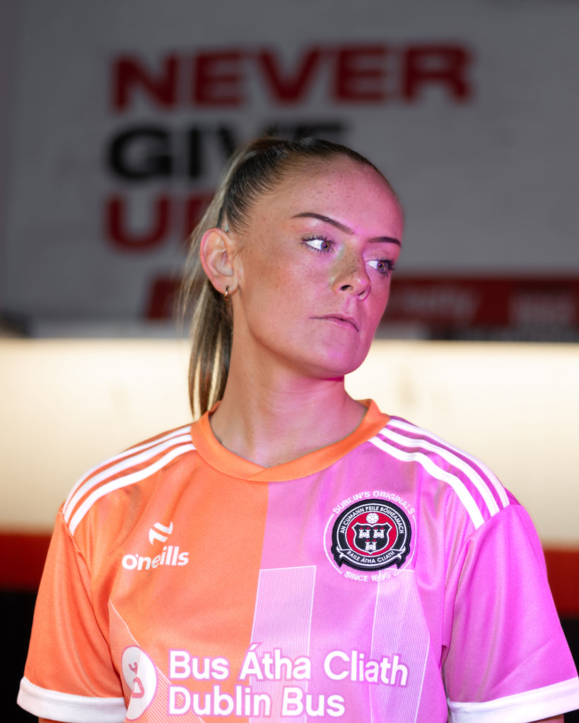 Designed by Annie Mac, the shirt features a two-tone orange and pink design, a DJ play/pause symbol across the centre and a woven hem tag of the club crest and Annie’s signature.